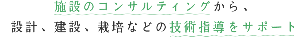 農業経営のコンサルティングから施設の企画・施工まで、環境保全に特化した新しい農業のカタチをご提案。